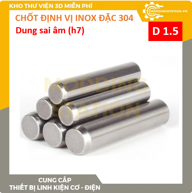 Chốt định vị đặc inox 304 size D1.5 dung sai âm (h7) (tên Tiếng Anh: Dowel Pin)