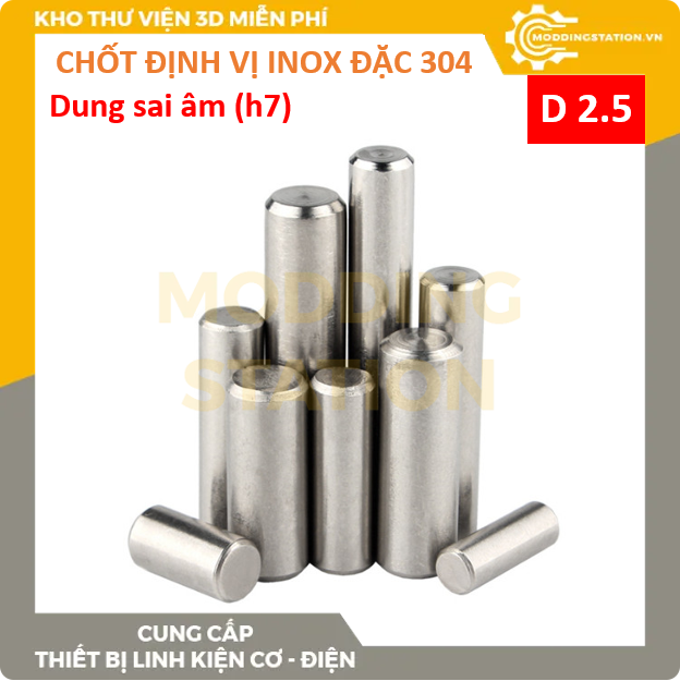 - Các kích thước: D2.5x6mm, D2.5x8mm, D2.5x10mm, D2.5x12mm, D2.5x14mm, D2.5x16mm, D2.5x18mm, D2.5x20mm, D2.5x25mm, D2.5x30mm, D2.5x35mm, D2.5x40mm, D2.5x50mm