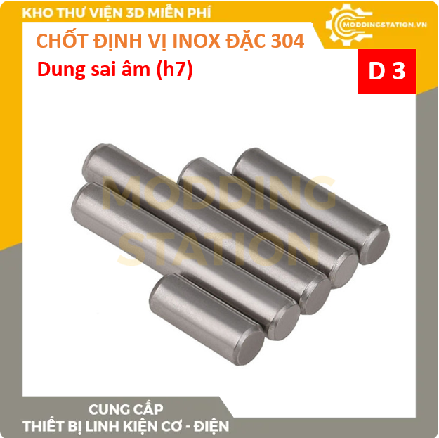 - Chốt định vị đặc inox 304 size D3 dung sai âm (h7) (tên Tiếng Anh: Dowel Pin)
