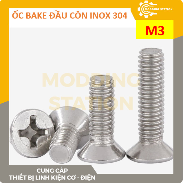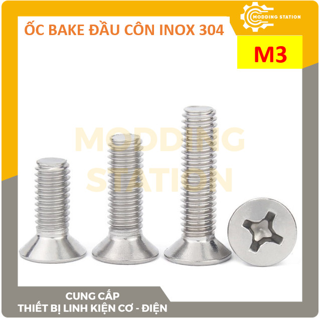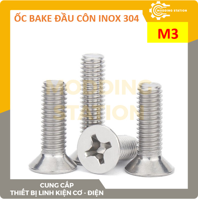 - Ốc Bake đầu côn inox 304 size M3x6mm (tên Tiếng Anh: Cross Countersunk Head Screw)