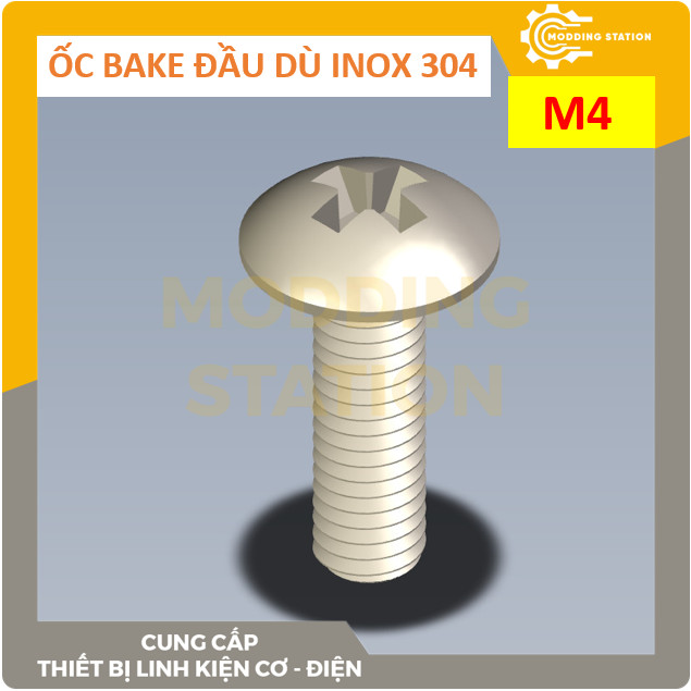- Ốc Bake đầu dù inox 304 size M4x8mm (tên Tiếng Anh: Cross Button Head Screw)