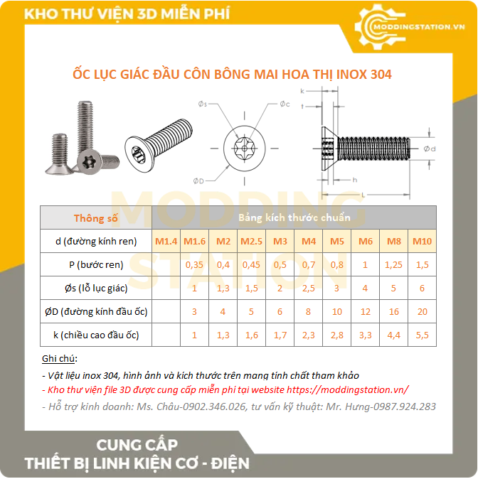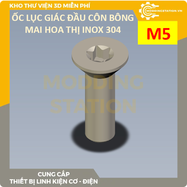 Ốc Lục giác đầu côn bông mai hoa thị inox 304 size M6x20