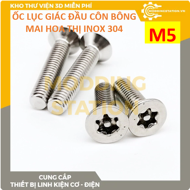 Ốc Lục giác đầu côn bông mai hoa thị inox 304 size M6x12