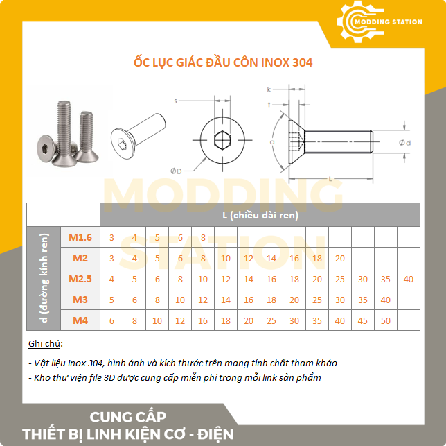 - Đường kính ốc là tính luôn phần ren ốc, chiều dài ốc tính luôn phần đầu ốc (mũ ốc)
