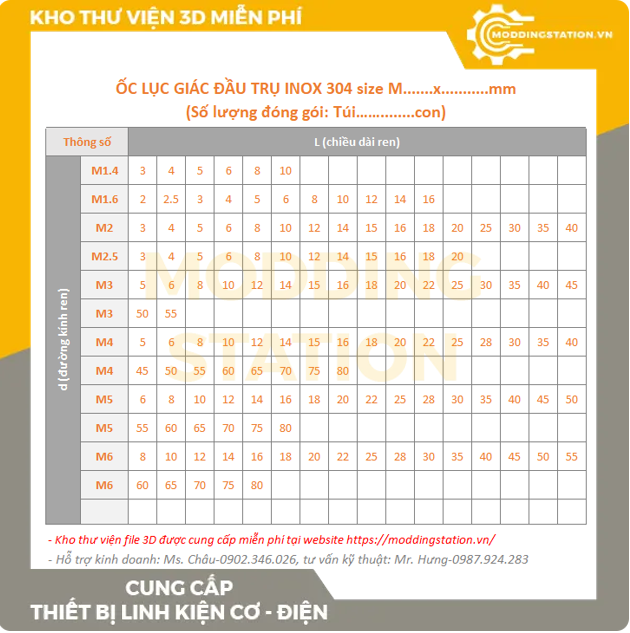 Ốc Lục giác đầu trụ inox 304 size M5x6