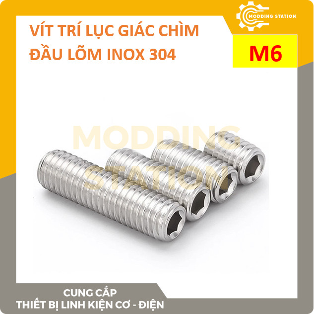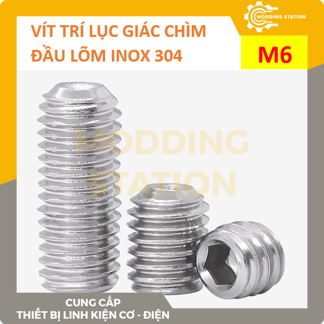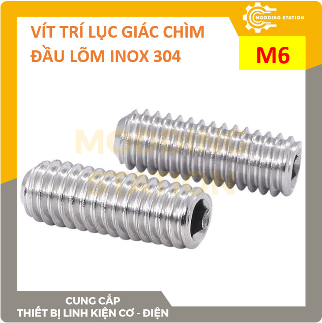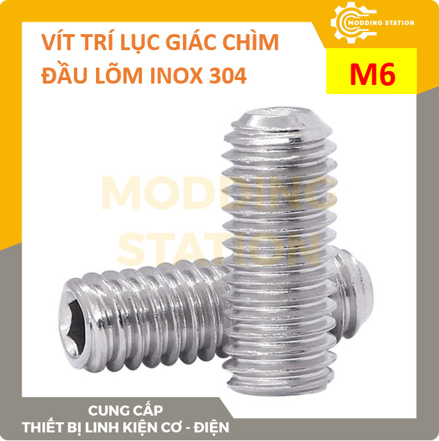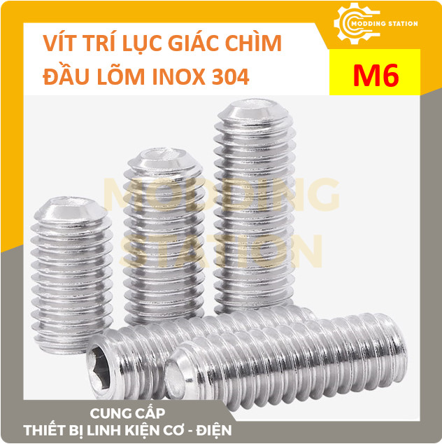 Vít trí lục giác chìm đầu lõm inox 304 size M6x4mm (tên Tiếng Anh: Hexagon Socket Set Screw Flat Point)